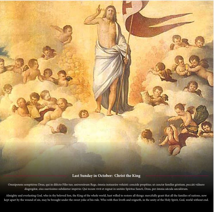 “The last Sunday of October seemed the most convenient…because…before celebrating the triumph of all the Saints, we proclaim and extol the glory of him who triumphs in all the Saints and in all the Elect” (Quas Primas, 29).