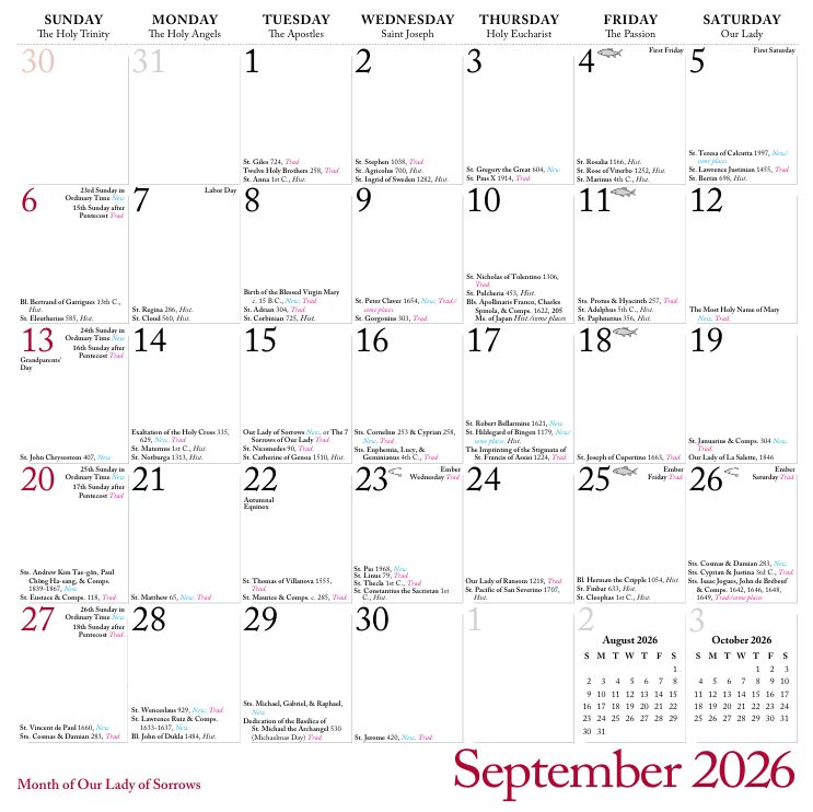 Thanks to TAN Press, the graphic design skills of D. White, and the artistic eye of Kara Knupp, we have a 2026 Liturgical Calendar just in time for Advent/Christmas shopping!