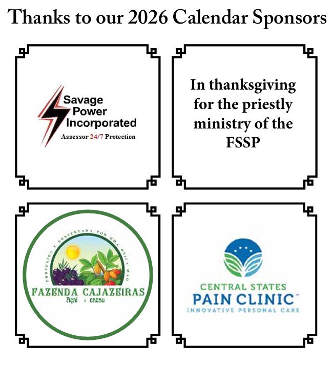 Also, a special thanks to four sponsors this year for helping underwrite the cost of the calendar, which means more of the proceeds can support the mission of Una Voce DSM to educate central Iowa on the beauty of Traditional Catholicism.